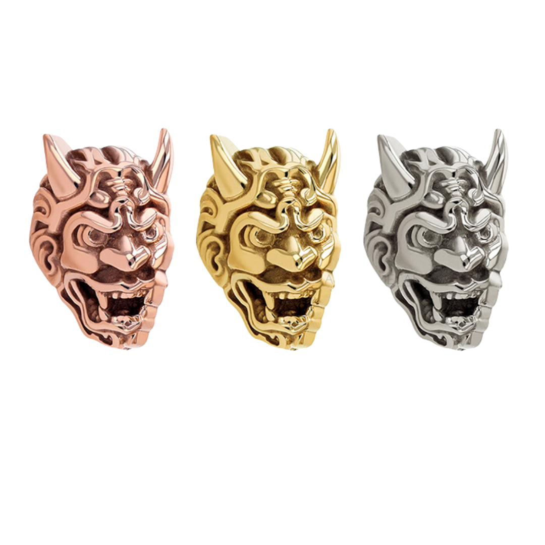 Add a touch of Japanese tradition to your piercings with our 18k Gold Hannya Mask. Available in white, rose, or yellow gold, this hannya mask attachment is both unusual and stylish.