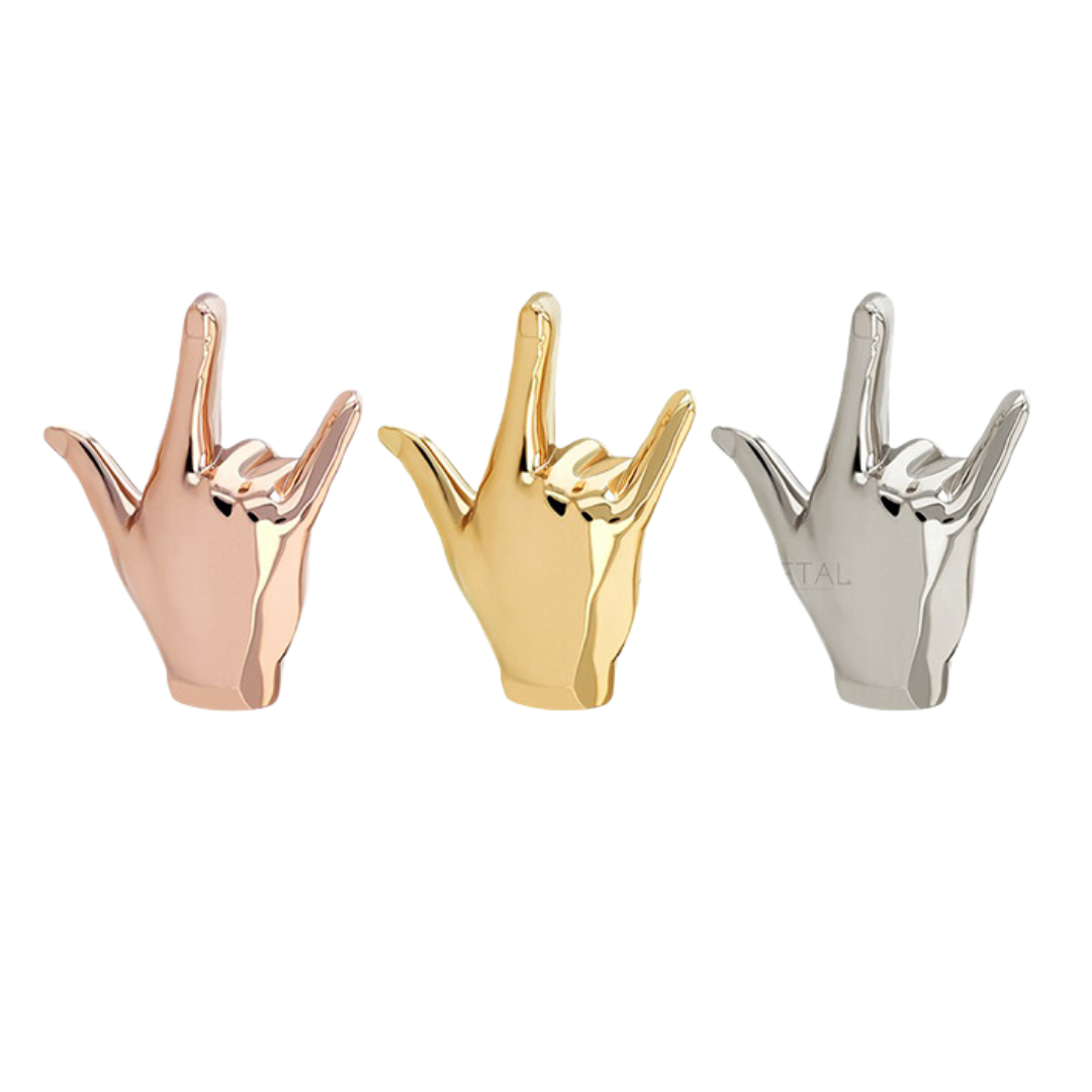 Made with high-quality gold in white, yellow, or rose, these attachments are sure to make a statement. Upgrade your style and show off your love for music with these rock hands.