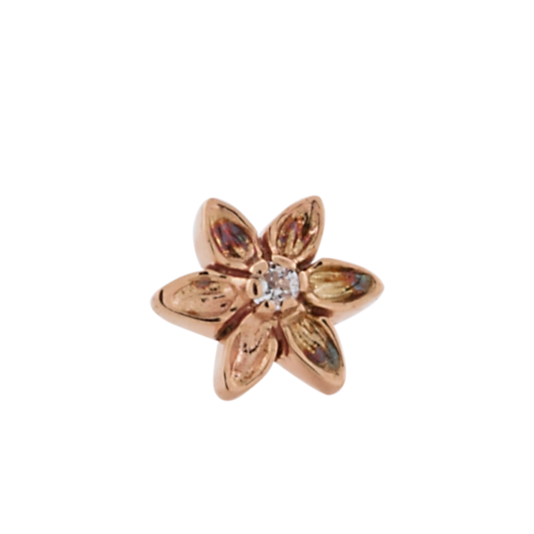 The 6 Petal Lotus Flower by Le Roi is a beautifully symbolic 14k solid gold threadless end that embodies balance and serenity. Featuring six sculpted petals surrounding a central CZ stone, this design blends natural elegance with refined sparkle. Available in yellow, white, and rose gold, it’s a timeless piece for those who want their piercing jewellery to feel meaningful as well as luxurious.