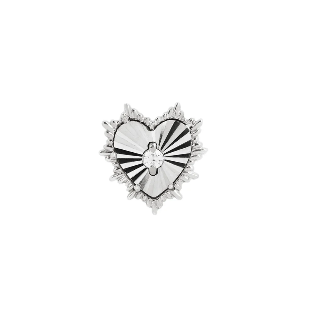 Sharp, dimensional edges protect a delicate CZ in the center of a Solid 14kt Gold heart. Style this beauty in your Nose, Philtrum, Helix, Lobes, and much more!️
