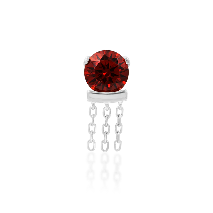 The Coella with Garnet is a bold, luxurious feature piece that adds instant drama to any ear curation. The deep red garnet CZ brings rich colour and intensity, while the triple cascading chains create a striking sense of movement and depth. It is the perfect choice for clients who want a statement detail that still feels refined and elegant.