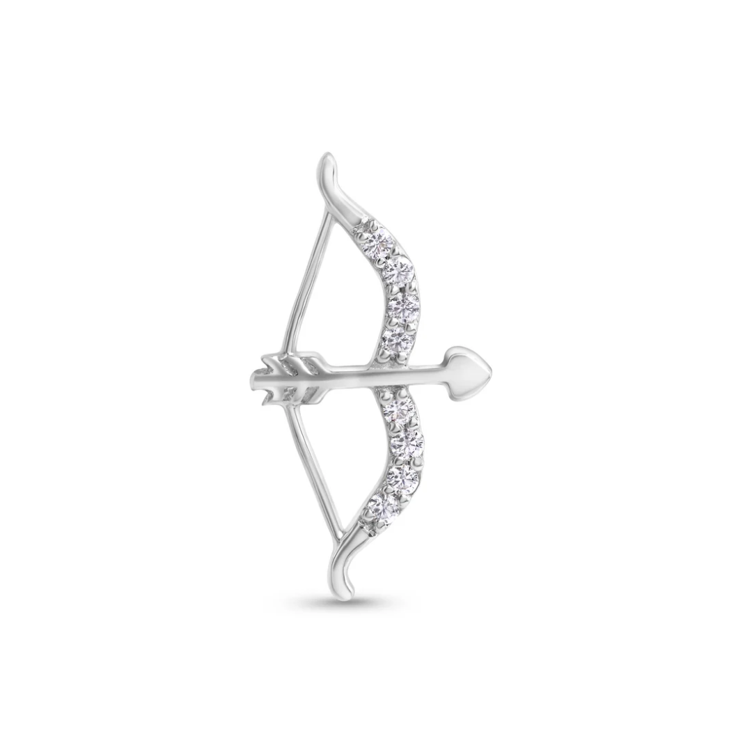 The Norvoch Cupid’s Bow end brings an elegant, sculptural presence to the ear, crafted in polished gold with a graceful open silhouette. A line of bright CZ stones follows the curve of the bow, adding refined sparkle without overwhelming the design. The arrow detail completes the piece with a sense of movement and delicate artistry. Hand finished for a flawless shine, it makes a striking focal point in any curated ear.