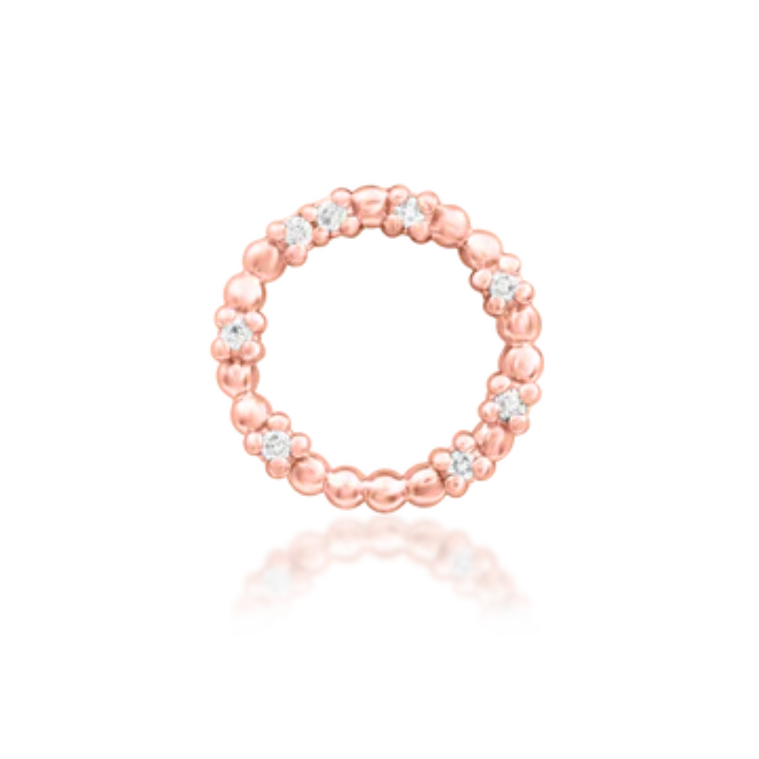 Elevate your ear stack with the Darby — a beautifully crafted 14k gold circular stud featuring a beaded design accented with clusters of shimmering cubic zirconia. The intricate texture gives a luxe feel, while the polished finish ensures it catches the light from every angle. Perfect for flat, conch, or lobe piercings, this piece blends timeless elegance with a modern silhouette.