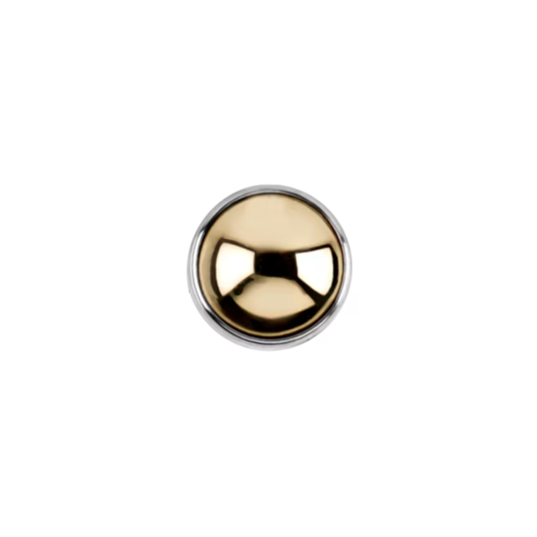 The Doublette is Le Roi Jewelry's take on understated elegance, a high-polish dome of solid 14k gold, perfectly framed in implant-grade titanium. This minimalist threaded end offers a sleek, sculptural finish that catches the light effortlessly, making it a versatile choice for a wide range of piercings.
