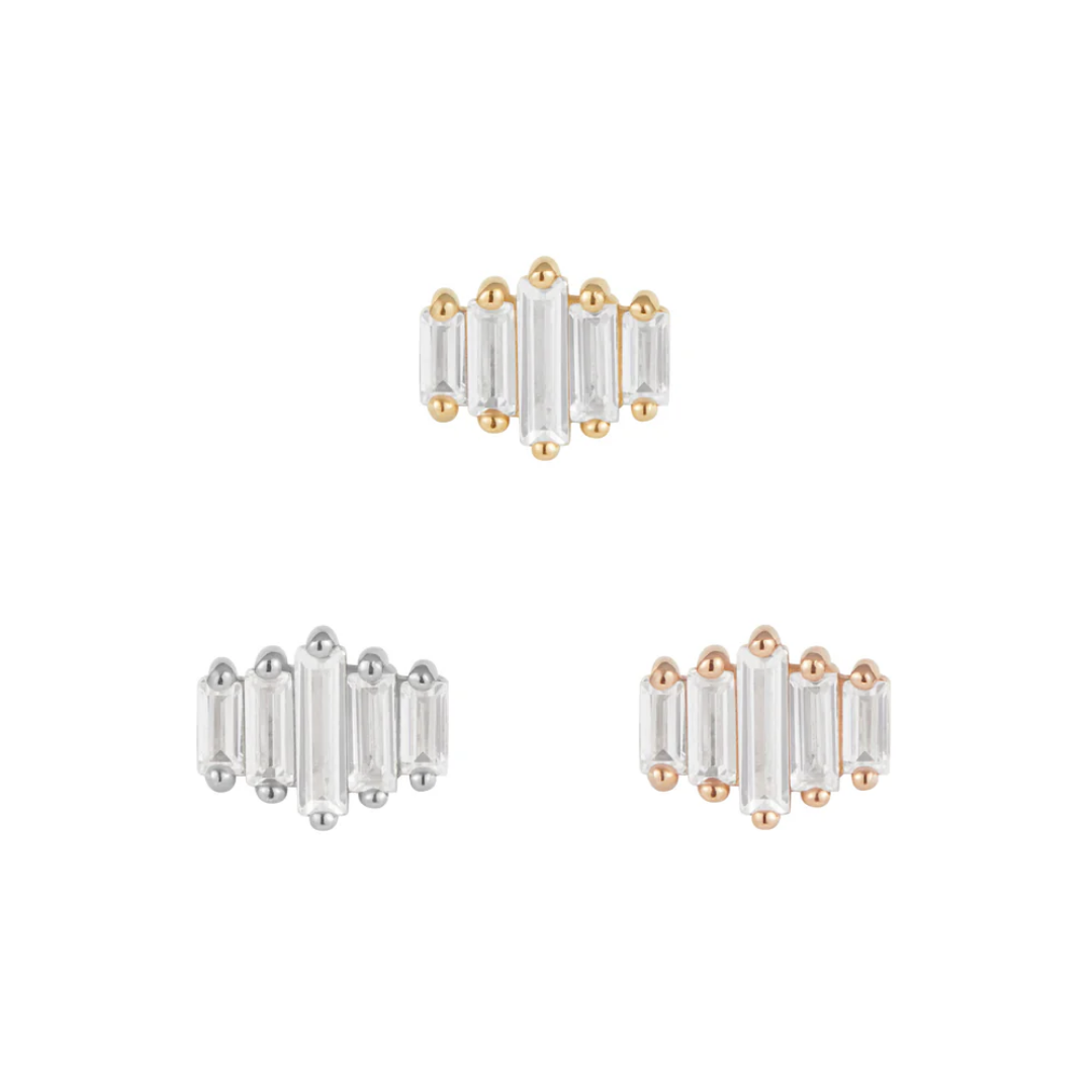 'Tis the season to sparkle and shine — Evolution is the dazzling addition you didn't know you needed! This elegant piece exudes sophistication and style with its versatile design, allowing it to be styled in a variety of different piercings. We particularly adore this piece in the conch, flat, nose, and philtrum piercings.