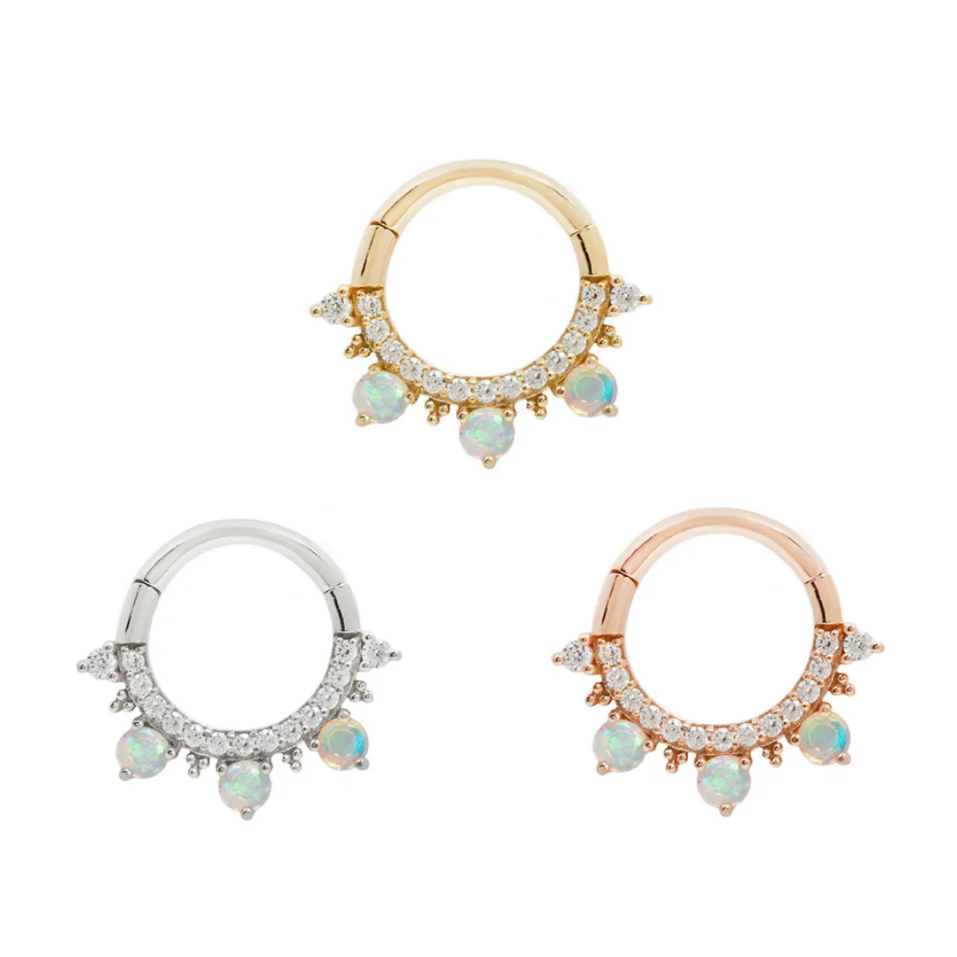 Gemstone: (3) 2mm Genuine Opals + a row of 1mm CZ's