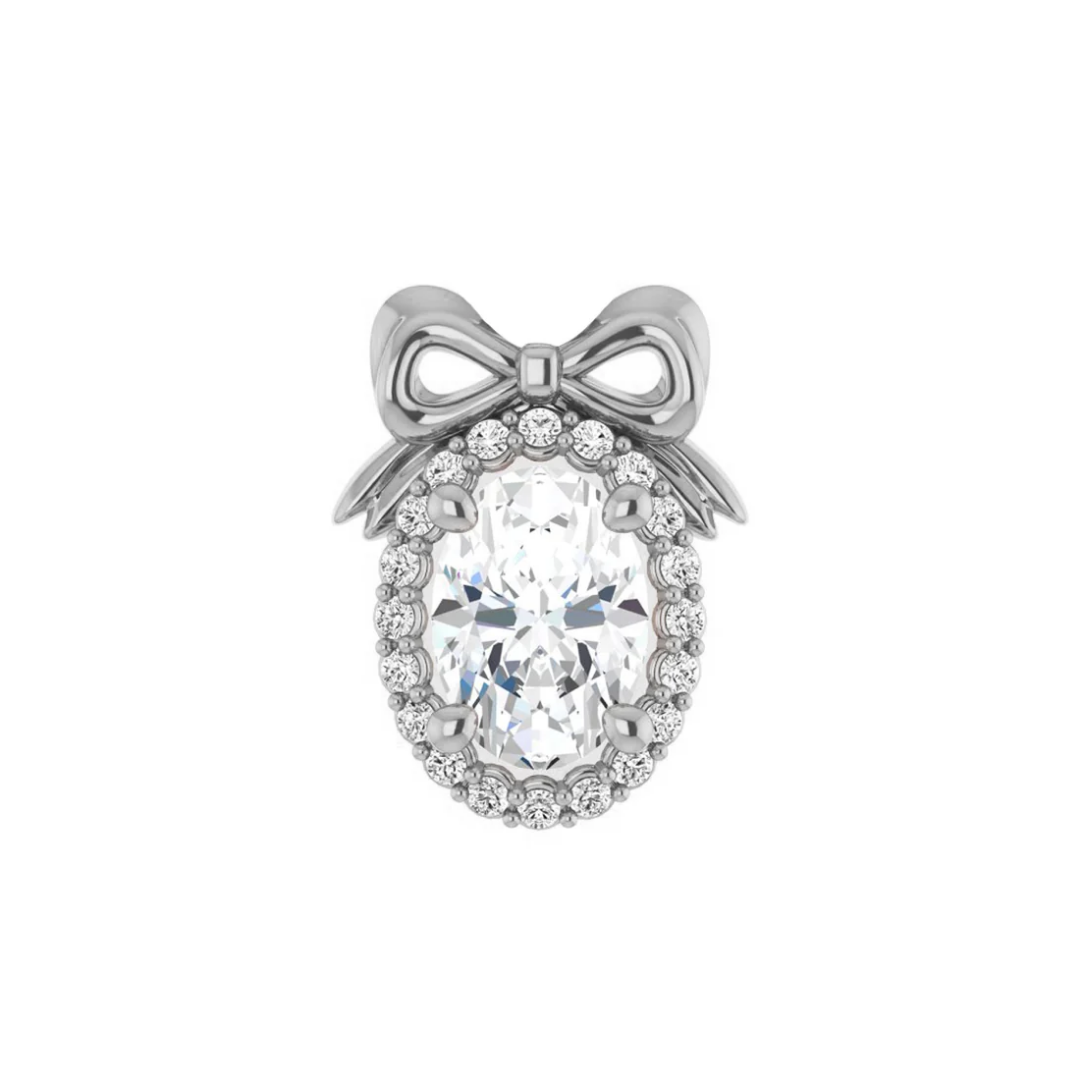 The Norvoch Halo Bow end pairs vintage charm with striking sparkle. A sculpted gold bow sits above an oval centre stone, framed by a halo of bright CZs that catch the light from every angle. Its delicate silhouette blends elegance with playful detail, making it a standout choice for a glam curated ear. Made with care, this piece brings a refined, feminine finish to any piercing.