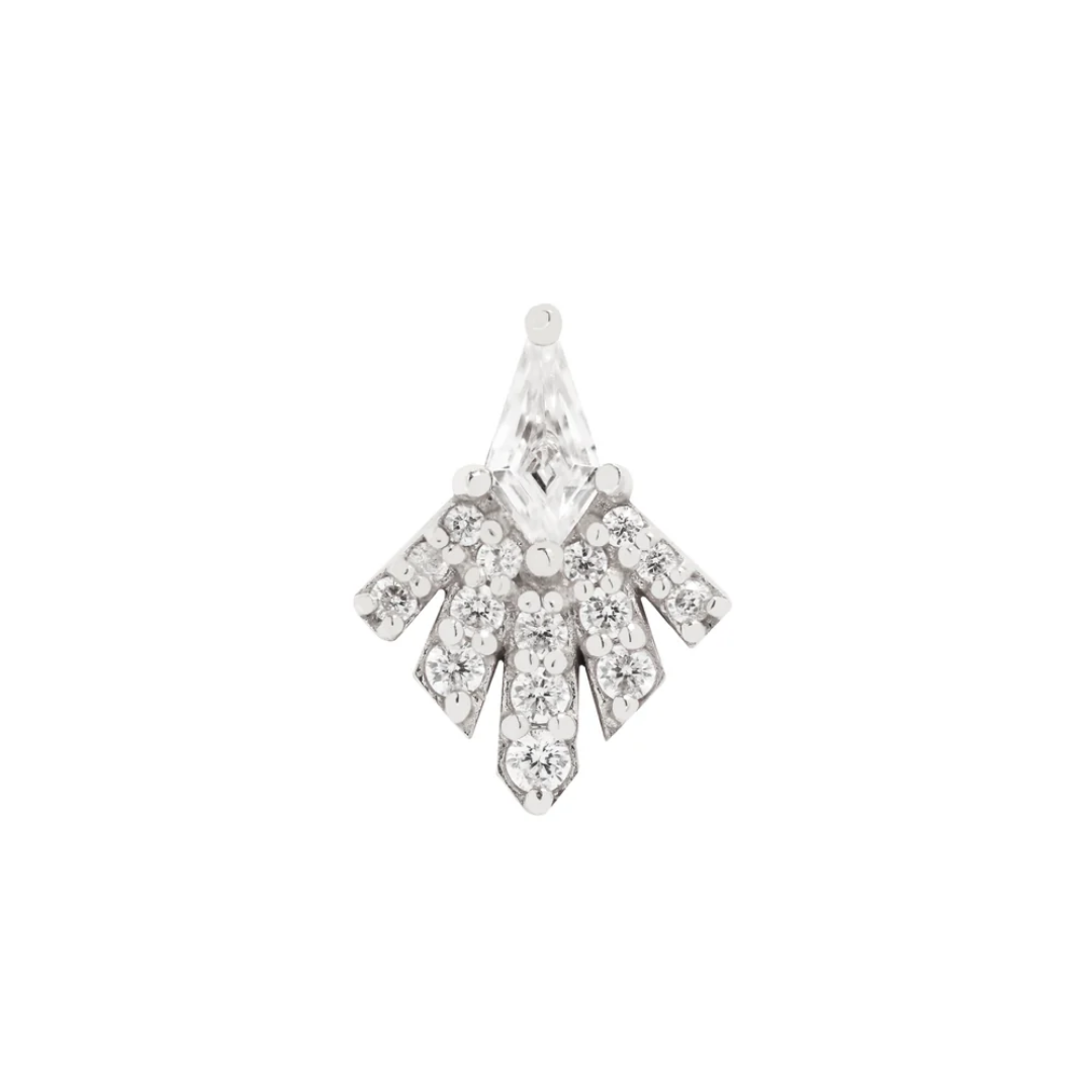 Gemstone: (1) 4mm x 2mm kite shaped CZ, with (1) 1.1mm, (3) 1mm, (3) 0.9mm, (4) 0.8mm, and (4) 0.7mm round faceted CZs