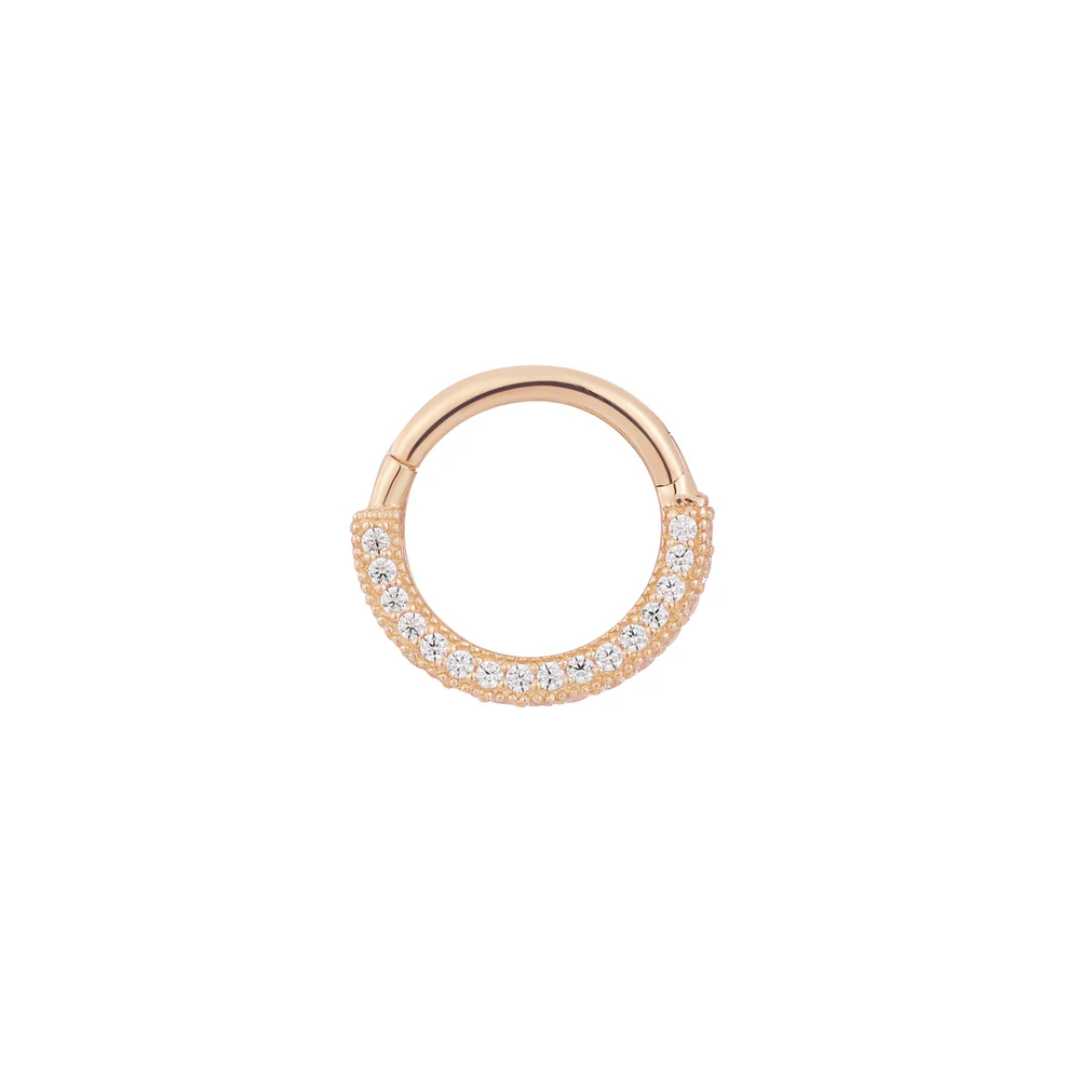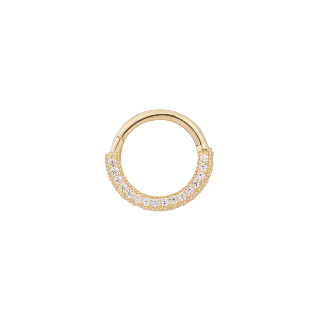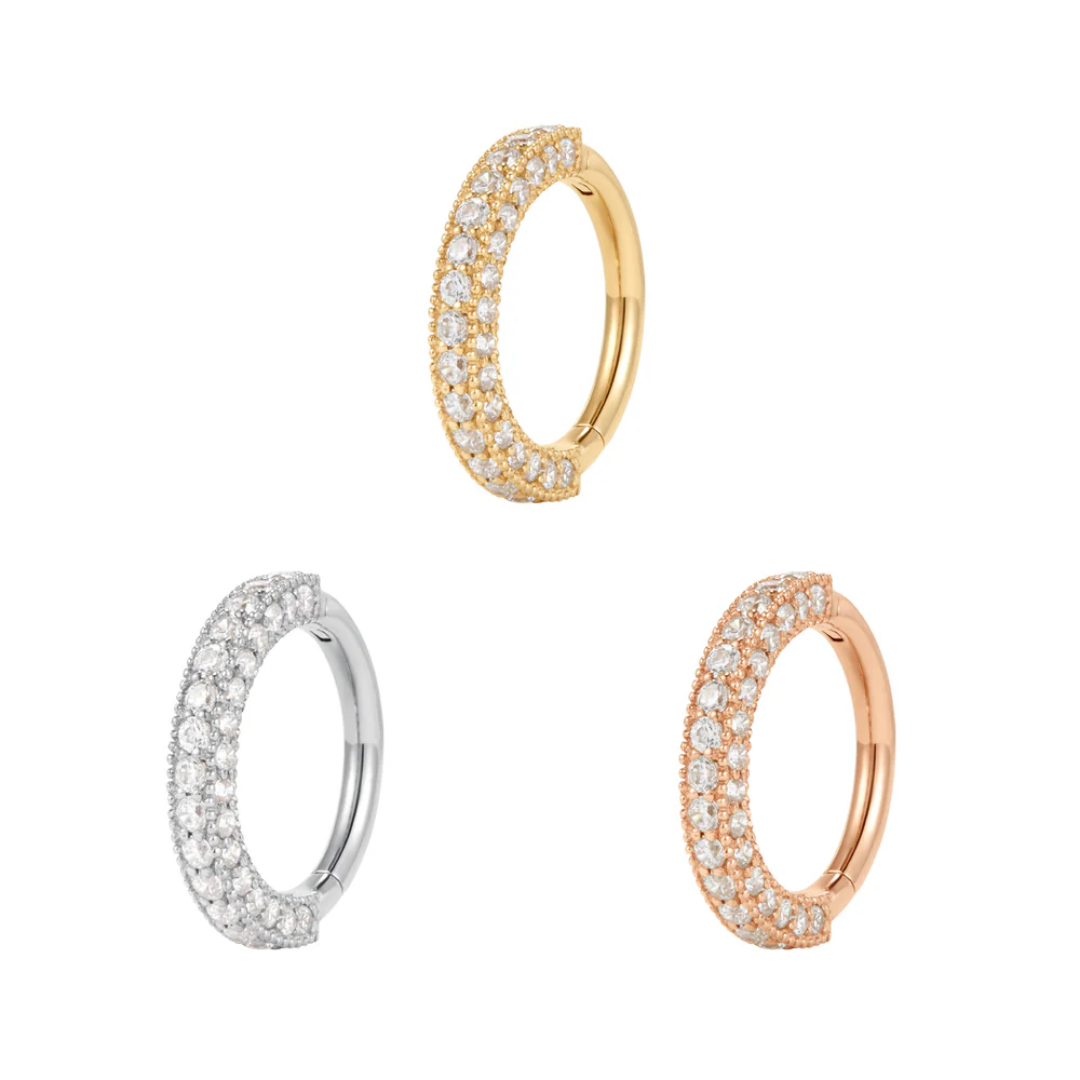 Prepare to swoon over our latest sensation, the Showcase clicker – unlike anything you've seen before! Elevating the game with a fresh design concept, this piece is crafted in solid 14k gold, featuring three sides adorned with dazzling CZs that redefine the clicker experience.