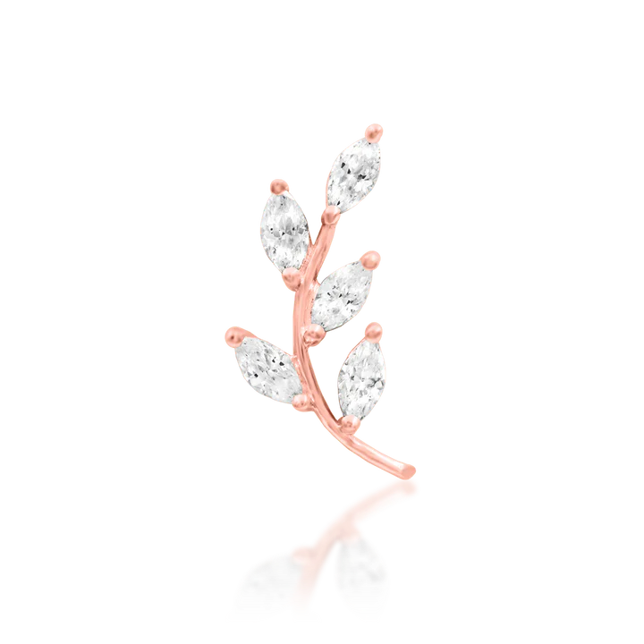 Vedia is a standout luxury statement, crafted with a sweeping branch silhouette and five brilliant marquise-cut CZ stones that catch the light from every angle. Its elegant curve sits beautifully along the helix, flat, or conch, giving any curated ear an instant high-end upgrade. This piece delivers a polished, elevated aesthetic while staying timeless and wearable for everyday luxury. A perfect choice for clients who want that effortlessly expensive look without overwhelming their stack.