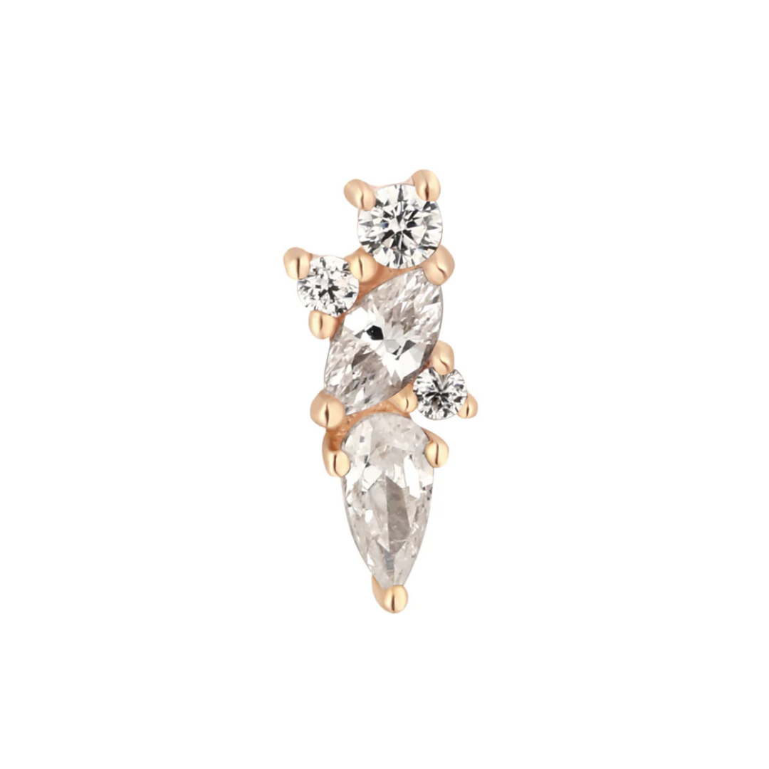See the world in a new light with Visionary! This gorgeous threadless end is perfect for any occasion with its five dazzling CZs set in solid 14k gold. Whether you're going out on the town or just having some fun, a little extra shine in your lobe, helix, and tragus piercings.